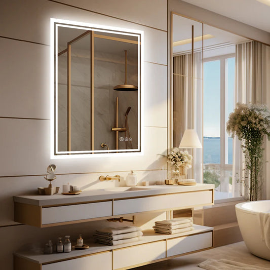 Modern LED Bathroom Mirror with 3-Color Dimmable Backlit and Anti-Fog Feature, 32x28"