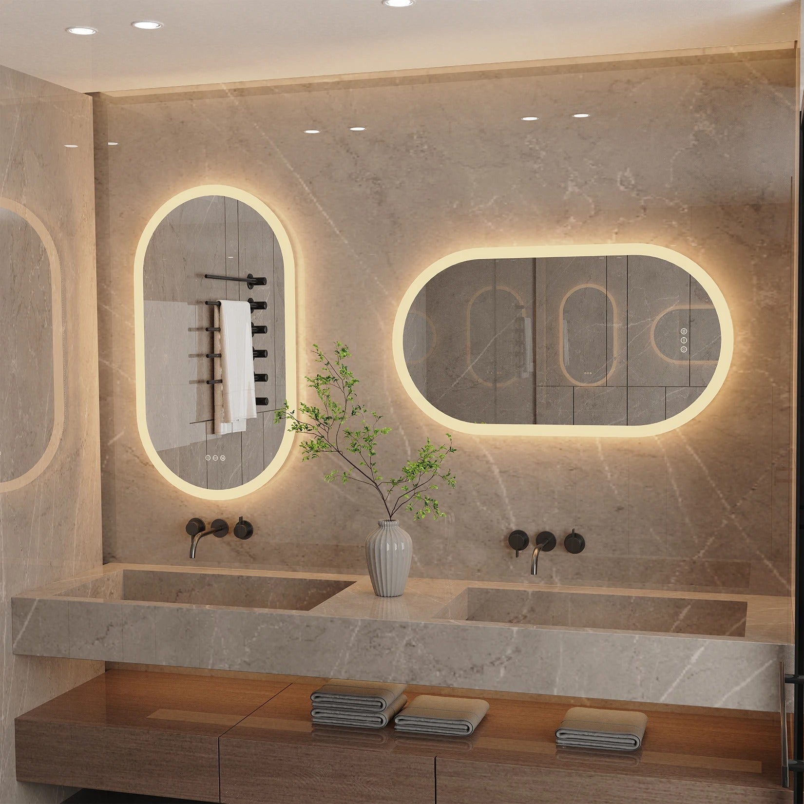 Oval Arched Backlit Bathroom Mirror with Anti-fog, dimmable & 3 Adjustable Colors (Hot Sale)