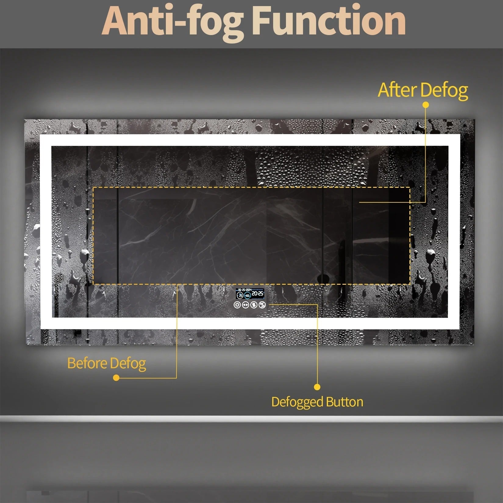 Smart LED Bathroom Mirror With Bluetooth,Multiple Size Large Rectangle Double Lights with Anti-Fog, 3 Color